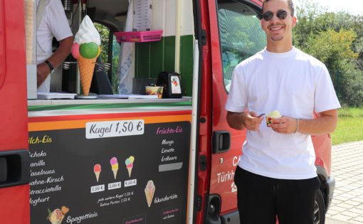 Letzte Woche hat uns die Hitze ordentlich eingeholt. Genau der richtige Moment für eine kleine Abkühlung. Spontan hat uns der Eiswagen in der Mittagspause am Mittwoch wieder auf unserem Firmengelände besucht und für alle Mitarbeitenden gab es kostenlos Eis. 🍨