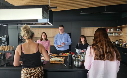 Sandra, Sebastian, Lena, Christian und Geldon durften diesmal den Kochlöffel schwingen. Diese Herausforderung wurde sehr gut gemeistert – es gab Wraps, die allen hervorragend geschmeckt haben.