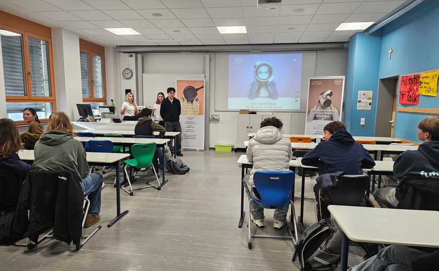 Unsere Azubis waren vor Ort in der Schule. Gemeinsam konnten wir den Jugendlichen spannende Einblicke in die Ausbildungsmöglichkeiten, den Arbeitsalltag und die Karrierechancen in unserem Unternehmen geben. Besonders gefreut hat uns, dass drei unserer Azubis, auch ehemalige Schülerinnen und Schüler der Realschule, sichtlich begeistert waren, ihre alte Schule wieder zu besuchen. Sie nutzten die Gelegenheit, den Schülerinnen und Schülern ihre Ausbildungsberufe und ihren Arbeitsalltag vorzustellen.